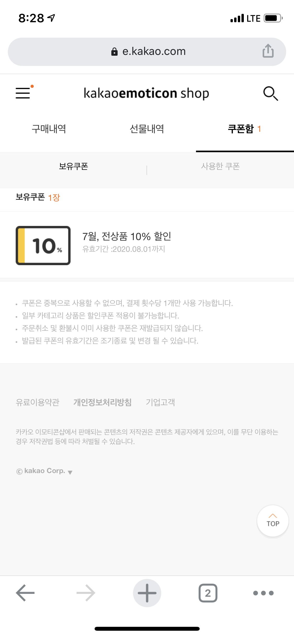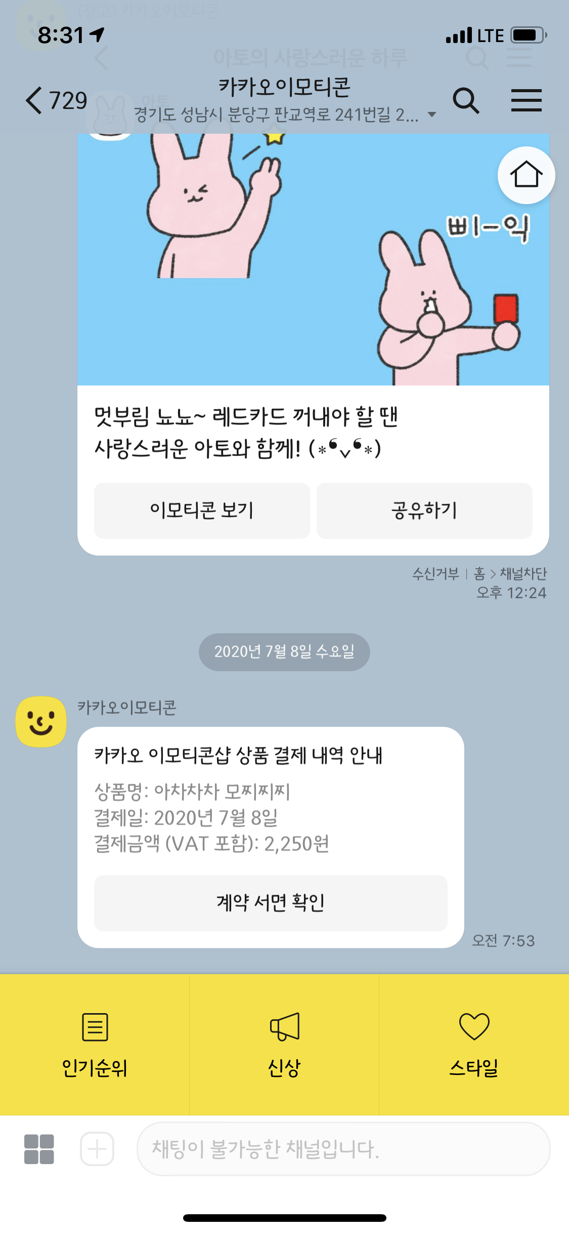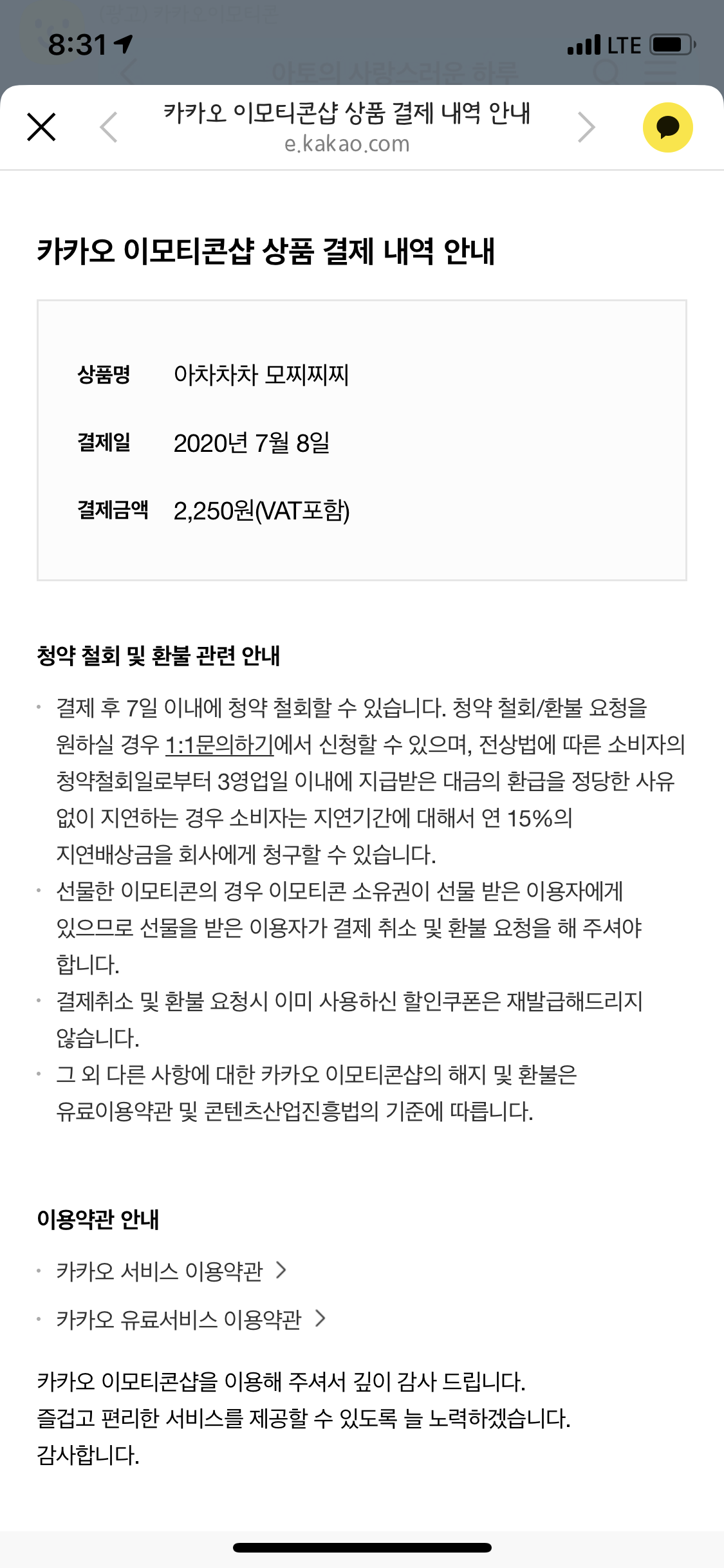 카카오이모티콘샵 결제내역은
